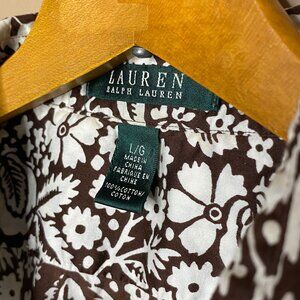 Old Money Vibe Ralph Lauren Brown & White Print 100% Cotton Lightweight Shirt