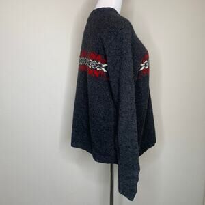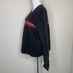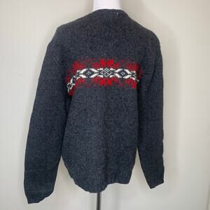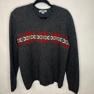 Old Navy 100% Lambswool Sweater Gray Red Nordic Design Sz Medium Large