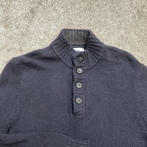 Old Navy 1/4 Button Up Pullover Sweater Mens Medium Navy Blue Wool Blend Mock