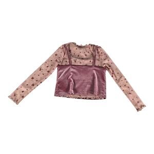 Old Navy 2-In-1 Velvet Cami and Printed Sheer Top For Girls Size Small 6-7