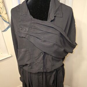 Old Navy 2X Black Dress Shirt Dress Long Sleeve Button Down Tie Waist