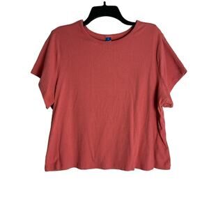 Old Navy 2X Pullover Ribbed Top Pink Peach Sugar Poppy
