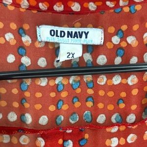 Old Navy 2X Sheer Red Polka Dot Button Down Shirt