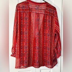 Old Navy 2X Sheer Red Polka Dot Button Down Shirt
