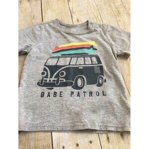 Shirts are 18-24 Months and shorts are 12-18 months. We wore at the same time.