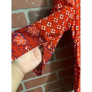 3/4 sleeve V-neck boho top size XL. Top features slits on sleeves, V-neckline, and lightweight. Beautiful vibrant print on top. Great for casual wear.