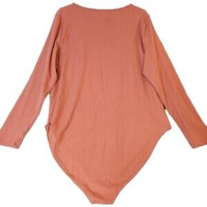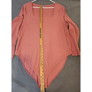 Old Navy 3X Ribbed Long Sleeve Square Neck Pink Bodysuit Full Coverage NWOT