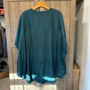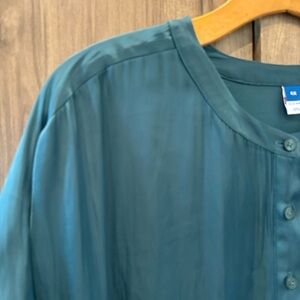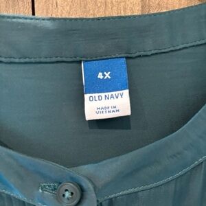 Old Navy 4X Top quarter Button Down Blouse Emerald Green Short Cap Sleeeve