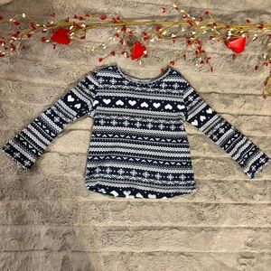 Old Navy 5T Blue Fair Isle Long Sleeve Tee, Hearts, Winter, Snowflakes