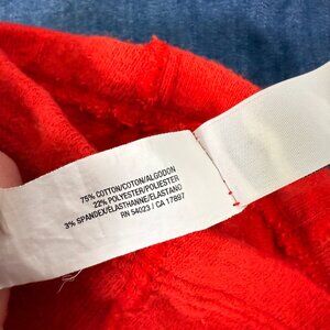 Adorable Old Navy jean dress made of 100% cotton. Dress is sized 6-12 months and has foldover collar and features chest pockets and full button down closure. Paired with red knit tights with a fabric blend of 75% cotton, 22% polyester and 3% spandex.