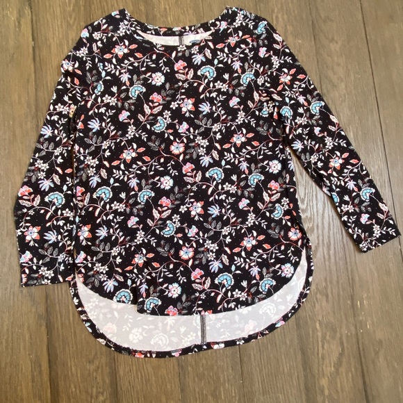 Old Navy Long sleeve Top- Girls size L 10/12. Black with multi color flowers