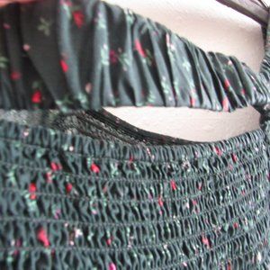 Old Navy Shell, long sleeve blouse multi colored flowers on forest green. #105