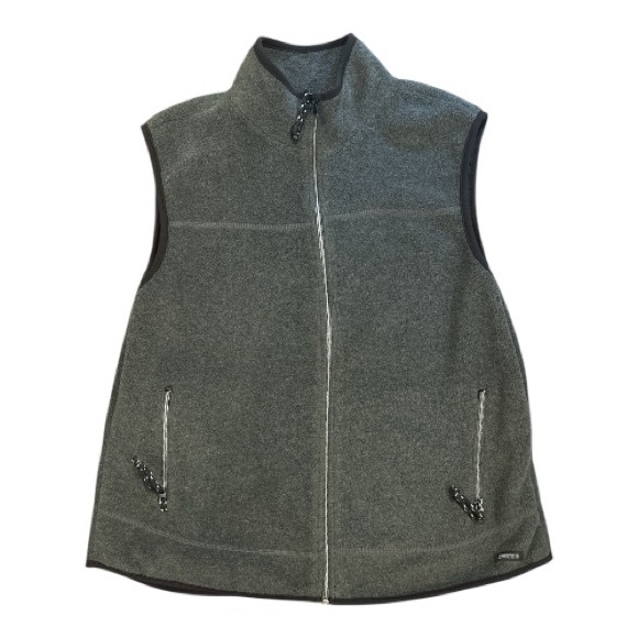 Old Navy XL Gray Full Zip Fleece Vest. This versatile fleece vest is perfect for layering on cooler days, offering lightweight warmth and comfort. Features a full zip front and two zippered pockets for secure storage. Excellent pre-owned condition, no stains or holes.