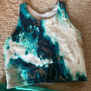 Vibrant aqua leggings with coordinating active sports top. Perfect for active play, dance, or casual wear. girls size 8