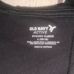 Comfortable black fleece jacket. Features zip-up front. Ideal for active wear.