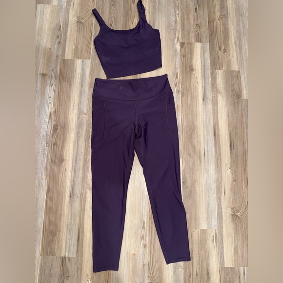 Comfortable and sleek leggings from Old Navy Active. Ideal for fitness and casual wear. Leggings size large with built in pockets . Top size medium, built in support.