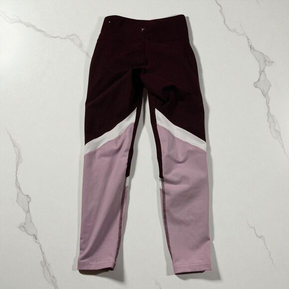 Old Navy Active Go-Dry Elevate Leggings Womens Small Colorblock Burgundy/Pink Zip Ankle