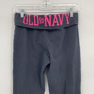 Old Navy Active Foldover Yoga Pants Gray Logo Back Flare Legs Small Petite Y2K style
