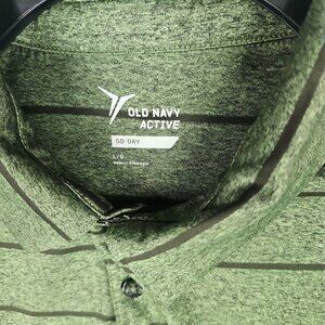 Old Navy Active Go-Dry Polo Shirt Mens L Green Striped Lightweight Jersey Knit