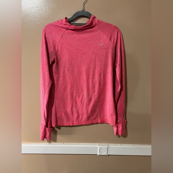 Vibrant pink performance top. Features long sleeves and logo detail.