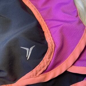 Old Navy Active size small running shorts! Shorts are a charcoal color with orange and purple accents.