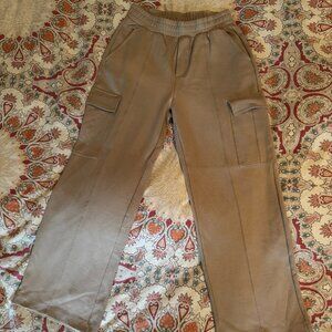 These versatile pants can take you from the office to brisk walk in the park. - Old Navy Active Pants - High Rise - Wide Leg - Dynamic Fleece - Cargo Pockets - Hip Pockets - Elastic Waist - Pull On - Size: Medium - Inseam: 30.25" - 69% Cotton, 26% Polyester, 5% Spandex Never worn. I bought the wrong size. :)