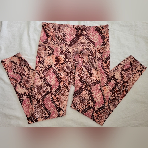 Old Navy Active Women's Elevate Leggings L Snakeskin Print Pink Go Dry High Rise