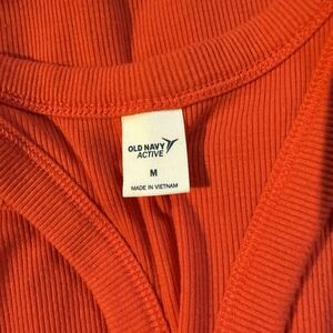 The Old Navy Active Women's Size M Racerback Tank Top in orange is a stylish and comfortable activewear piece perfect for workouts or casual wear.