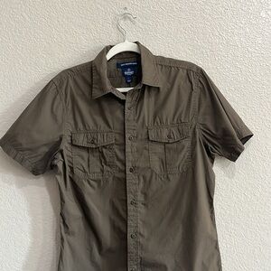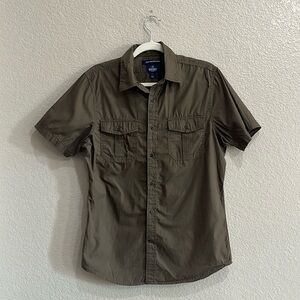 Old Navy Adult Man Size Small Brown Button Up Casual Short Sleeve Shirt Slim Fit