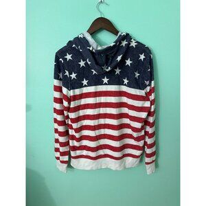 american flag hoodie, patriotic sweatshirt, zip-up hoodie, casual wear hoodie, Old Navy hoodie, cotton blend hoodie, lightweight hoodie, USA themed hoodie, unisex flag hoodie, large hoodie, red white blue hoodie, stars and stripes hoodie, drawstring hood sweatshirt