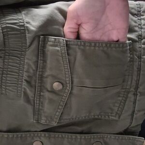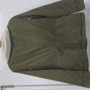 Old Navy Army Green, Flannel Lined Button Up Jacket with Sherpa Collar Size L