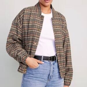 Old Navy Autumn Houndstooth Plaid Snap Front Bomber Jacket