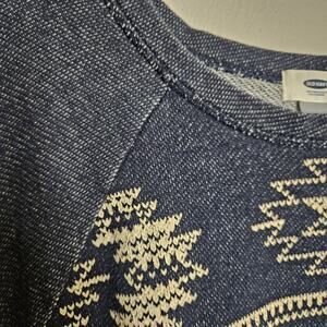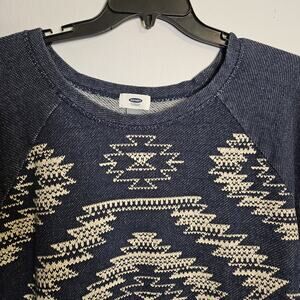 Old Navy Aztec Print Knit Pullover Top Blue Beige Size XL Cotton Blend Soft L/S