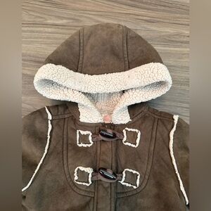 Old Navy Baby Girl Y2K Brown Coat with Cream Sherpa Lining size 18-24M
