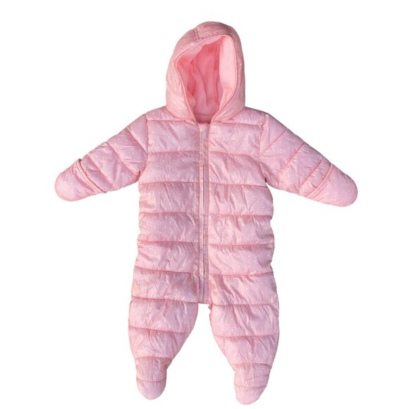 Old Navy Baby Polka Dot Quilted Snowsuit Sz 6-12mos Pink One-Piece Winter Girly