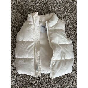 NWOT Old Navy Ivory/Cream Infant Puffer Vest Fleece Inside Chin Guard Zipper Size 0-3