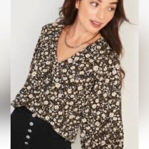 Old Navy Babydoll Top | Swiss Dot Floral Boho Peasant | Prairie Cottagecore | XL Tall