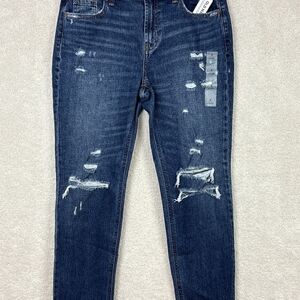 Old Navy Barbara Dark Wash Ripped Boyfriend Straight Denim Blue Jeans Sz 4 NEW