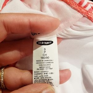 Old Navy bathing suit. Top is size small and a red orange color, bottom is size medium. New never worn, has no tags. Clean non-smoker home.