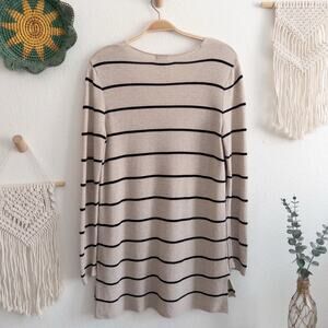 Old Navy Beige Black Stripe V-Neck Pullover Knit Top Tunic Length Size Large