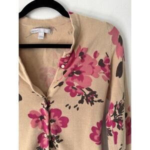 Old Navy Beige Button Front Fitted Purple Floral Cardigan Sweater Size Small