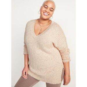 Old Navy Beige Speckled Textured Rib Knit V-Neck Tunic Sweater S