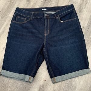Old Navy Bermuda Jean Shorts Womens Sz 12 Dark Blue Stretch Denim Cuffed Midrise