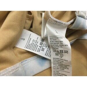 Measures 14" across the waist and 14.5" across the bottom of the bikini top. Fabulous looking swim suit!