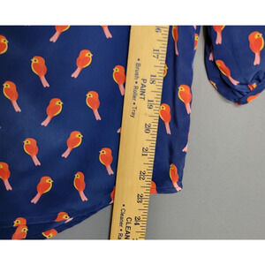 Old Navy Bird Print Button Top Womens S Blue Red Low V-Neck 3/4 Sleeve Whimsical