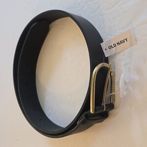 Old Navy Black Belt with Gold Buckle Neutral Minimalist Sz.M/L