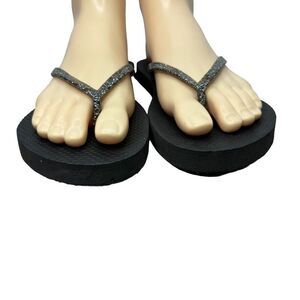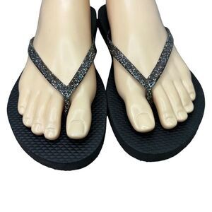 Old Navy Black Black Glitter Slip On Flip Flop Sandal Womens Size 7 M