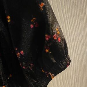 Old Navy velvet like black dress featuring a red floral design. Ideal for versatile styling. Excellent used condition. Small 6/7