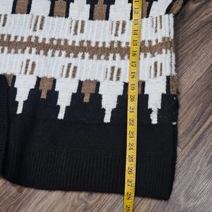 Old Navy Black & Earth Tone Fair Isle Oversized V Neck Sweater Size M