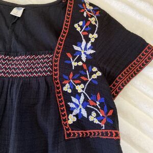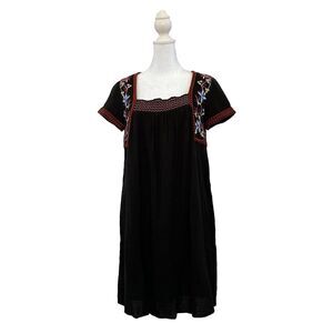 Old Navy Black Embroidered Floral Square Neck Dress Boho Peasant Small